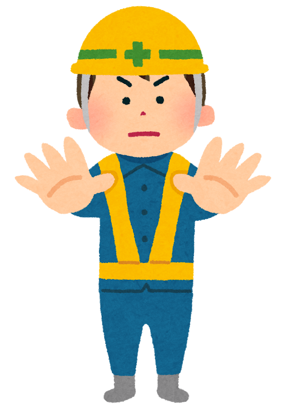 手で止めている工事現場の人のイラスト 立入禁止 ストップ かわいいフリー素材集 いらすとや