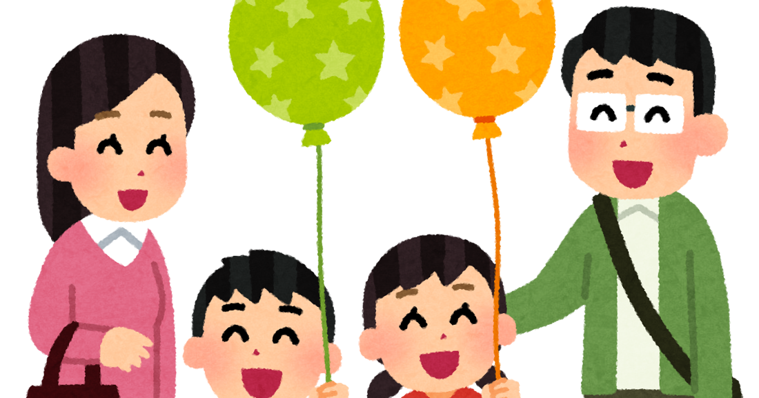 風船を持つ男の子と女の子と両親のイラスト かわいいフリー素材集 いらすとや